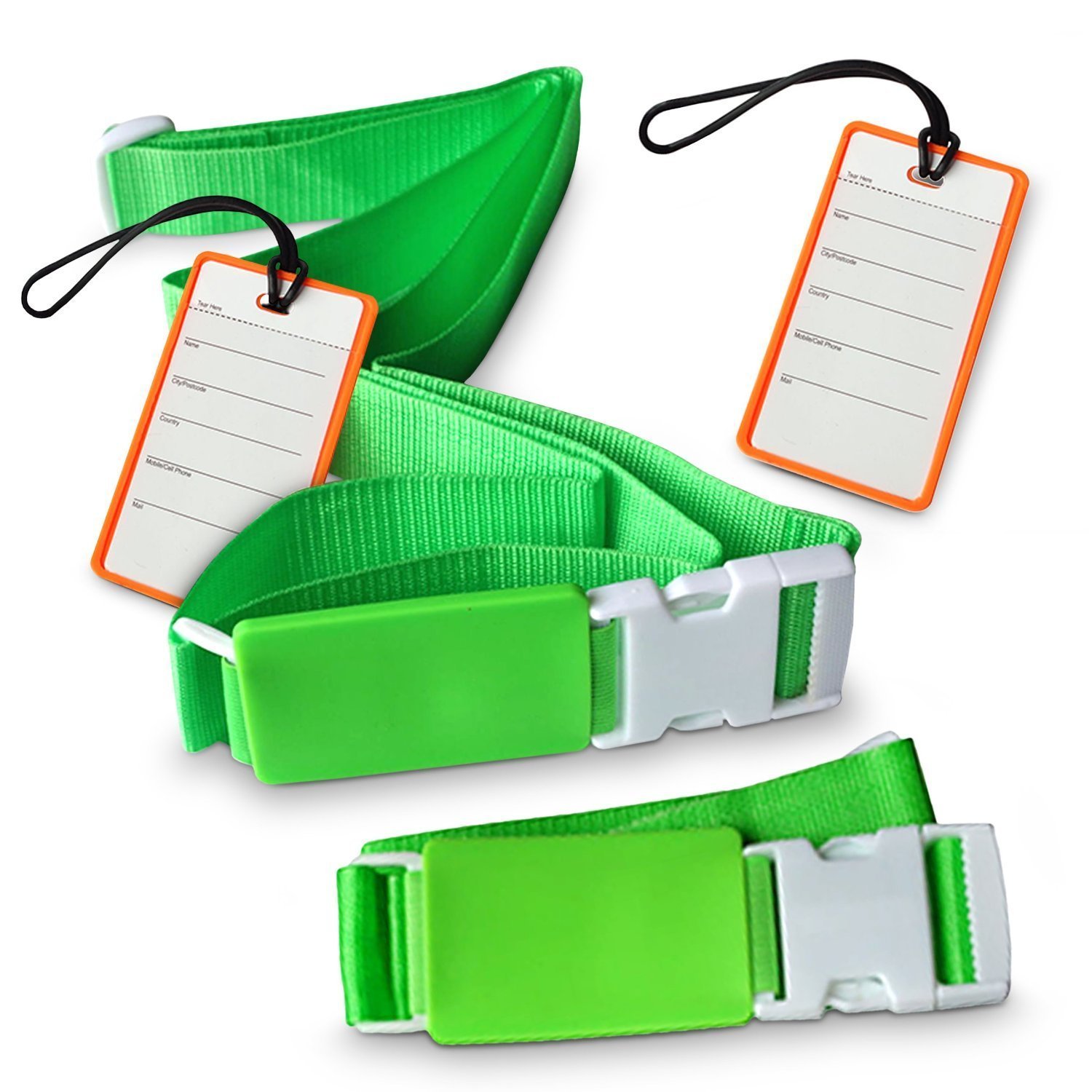 I do a lot of travelling so i'm always on the lookout for quality luggage straps and i have to say this is one of the best ones i have ever used. The bright green color is awesome, i can always spot my luggage and keep an eye on it. It also includes a luggage tag, which is great cause it's one less thing i have to buy and keep track of when traveling. The tag itself is also very bright orange and easy to find.